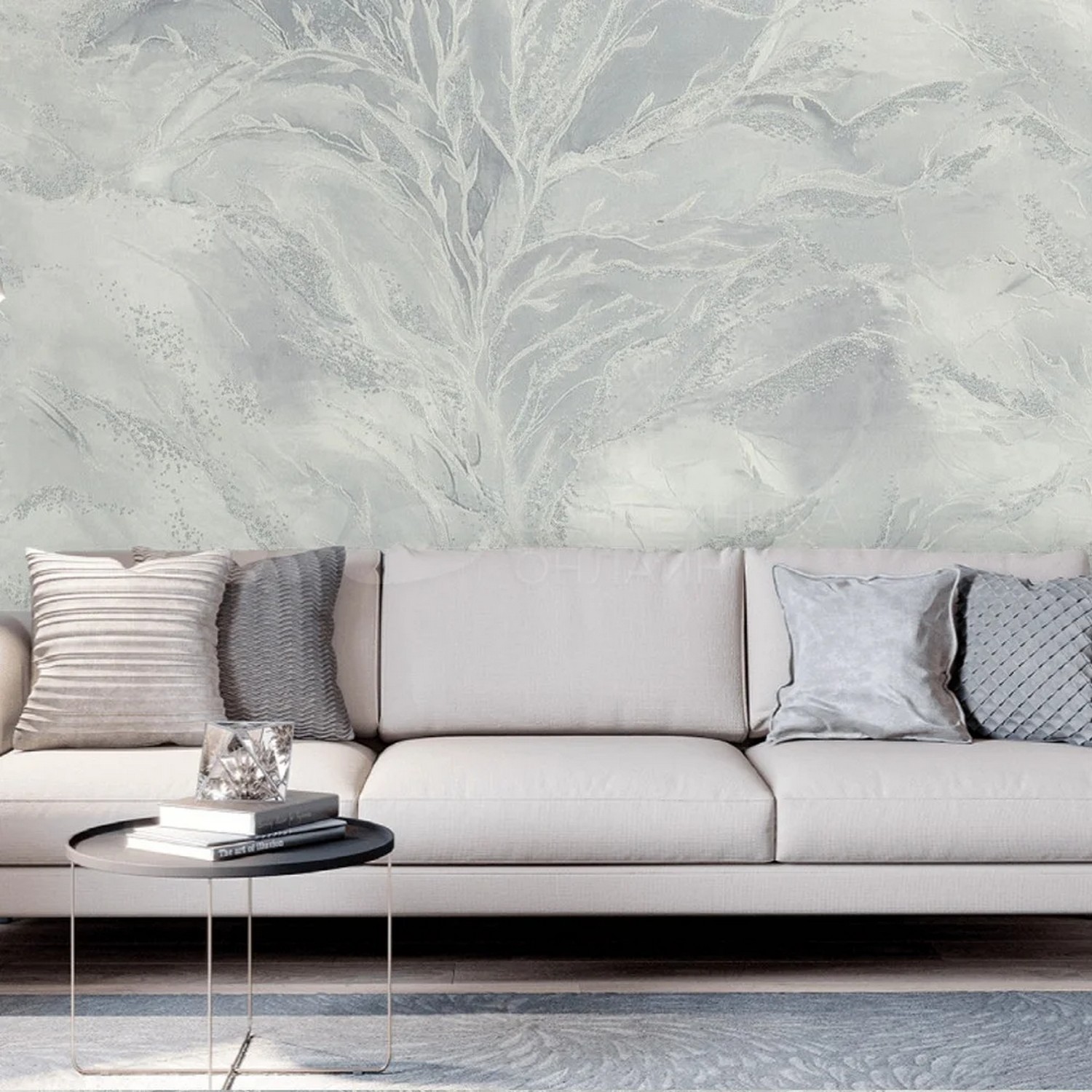 Фон коллекции «Fern» выполнен в спокойных пастельных тонах и имитирует текстуру рогожки, покрытую перламутром. Такое решение поддерживает основной мотив и придает всей коллекции атмосферу уюта и комфорта.