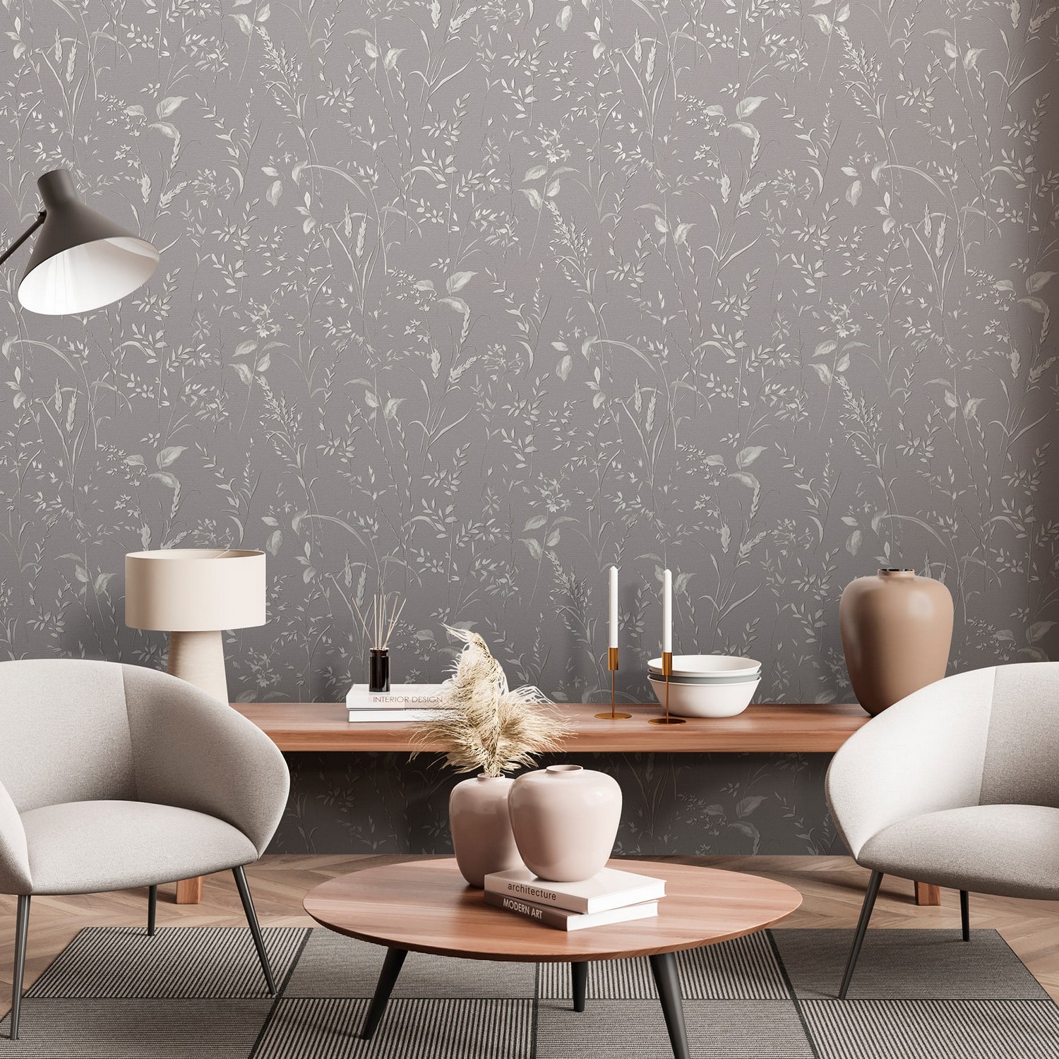 Главная роль в коллекции ARIA от Victoria Stenova, безусловно, принадлежит полупрозрачной ветке, выполненной слегка небрежном итальянском стиле, без строгой симметрии, присущей строгим классическим дизайнам обоев. Роскошный и ненавязчивый дизайн в жемчужной гамме смотрится очень целостно и органично в современном интерьере. Люди, выбирающие неоклассические интерьеры, характеризуются как успешные и рассудительные приверженцы традиций. Но наши обои одинаково уместны и в огромной гостиной с 3-х метровыми потолками и в маленькой спальне с потолком 2.5 метра. Мы декларируем тренд на шелковое сияние полотна, на благородные светлые переливающиеся фактуры, при производстве этой коллекции мы используем только перламутры и металлизированные краски. Сложное, многоуровневое тиснение фона словно светится изнутри, в этом проекте мы выбрали тактику максимального объединение центрального элемента и фона, уделив одинаковое внимание в проработке и использовании декоративных эффектов на всей фактуре в целом.