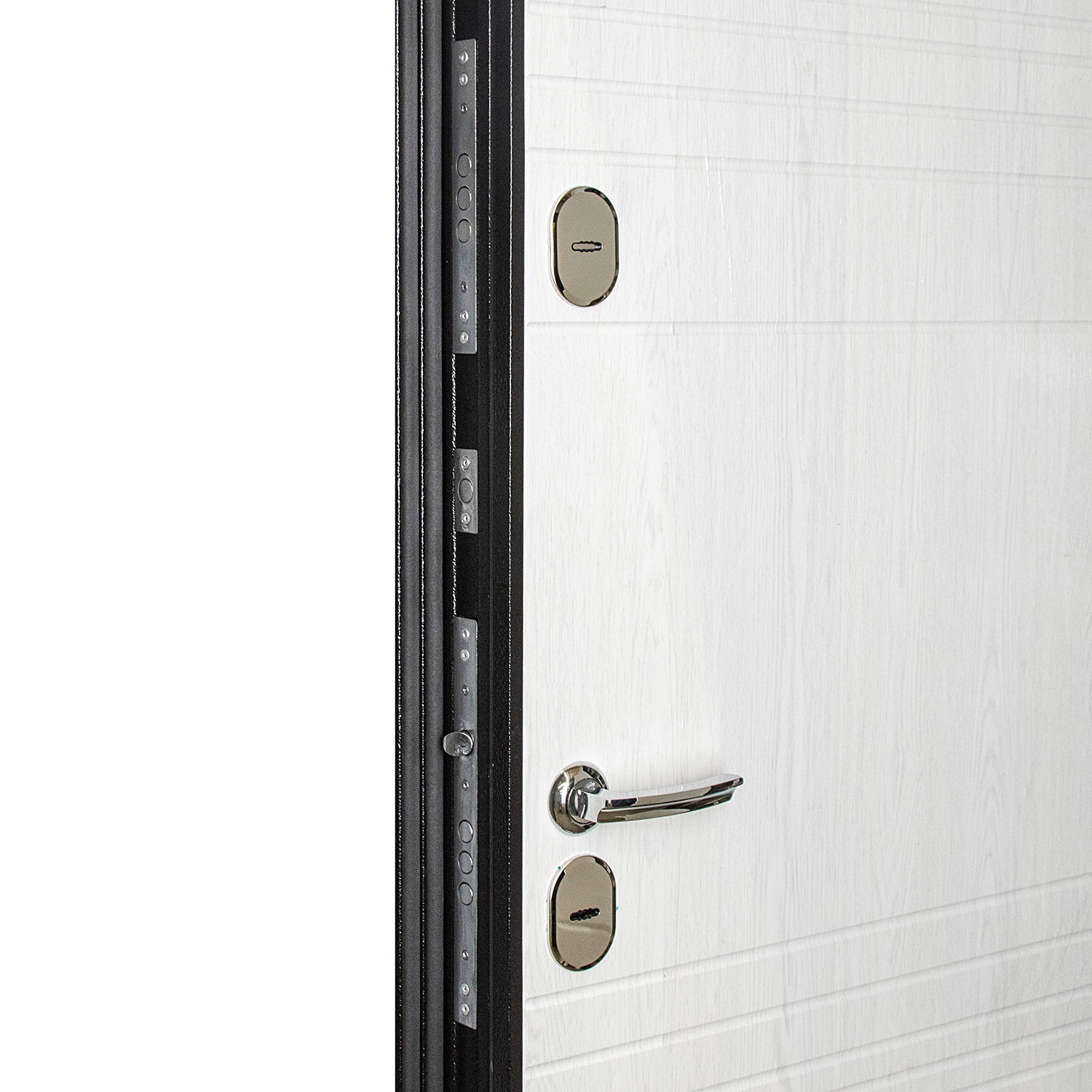 Дверное полотно, дверная коробка, замок основной, замок дополнительный, петли - 3 шт., ручки, наклад |