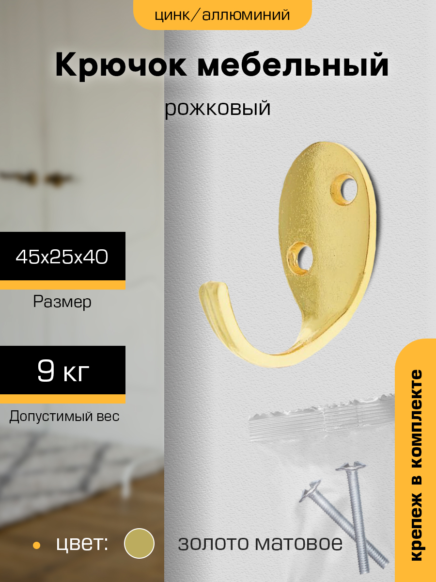 Крючок мебельный ЗОЛОТО матовое 1-рожковый KL-55 М0257ф "SANBERG" *10/100