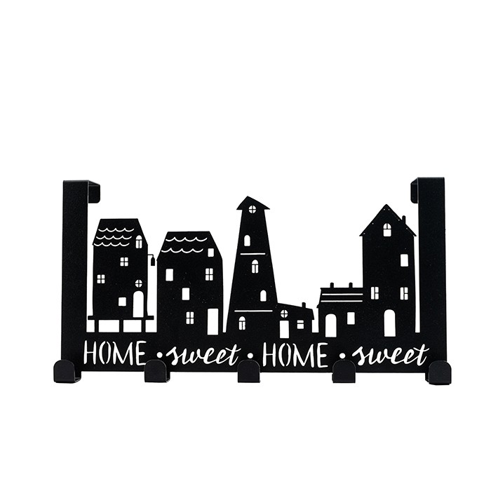 Вешалка на дверь на 5 крючков "Город" металл 36х18,5х6см черная Verda Line *1/100