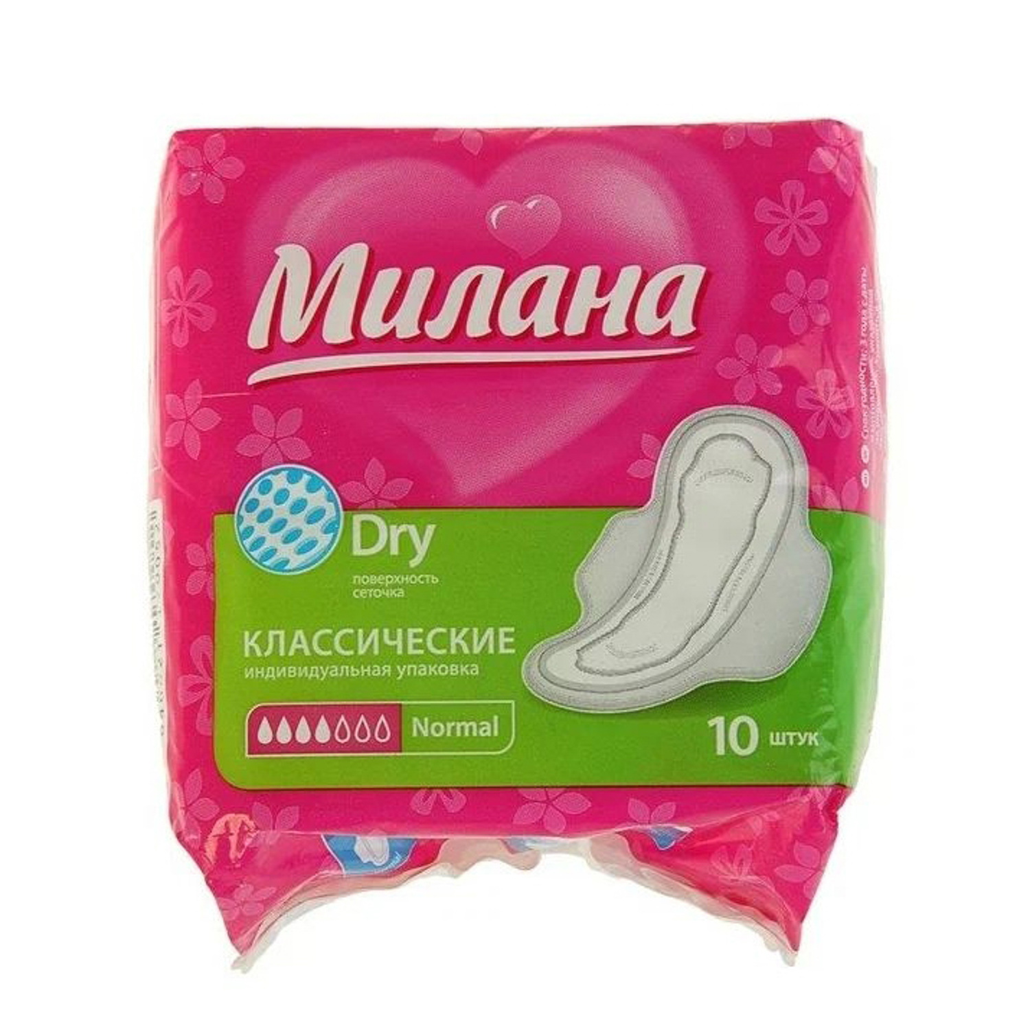 яяяПрокладки МИЛАНА Классик Драй нормал.10шт малиново-зеленый *35