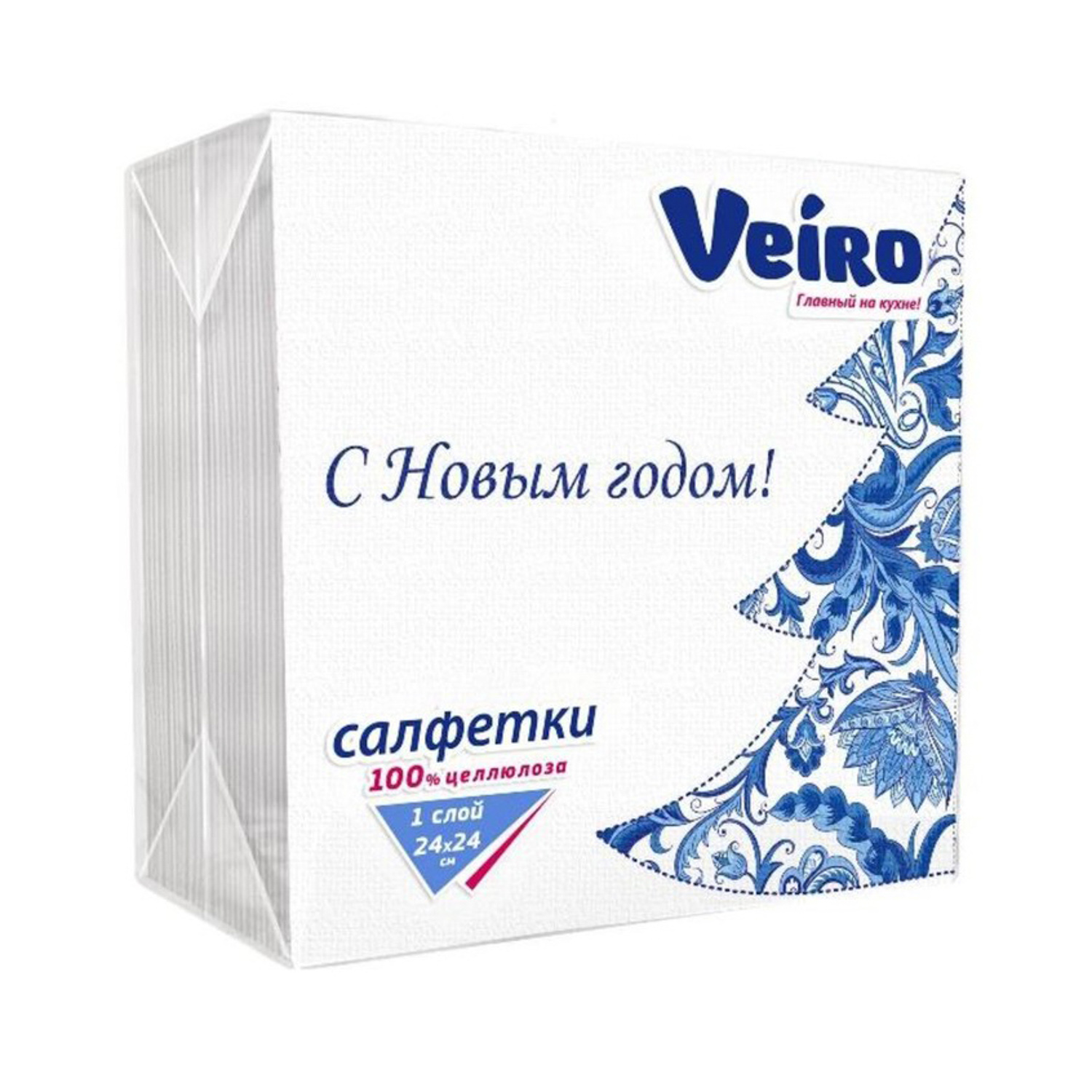 Салфетки бумажные 50шт НОВЫЙ ГОД 24*24 см Veiro Зима.Гжель 1 сл *90