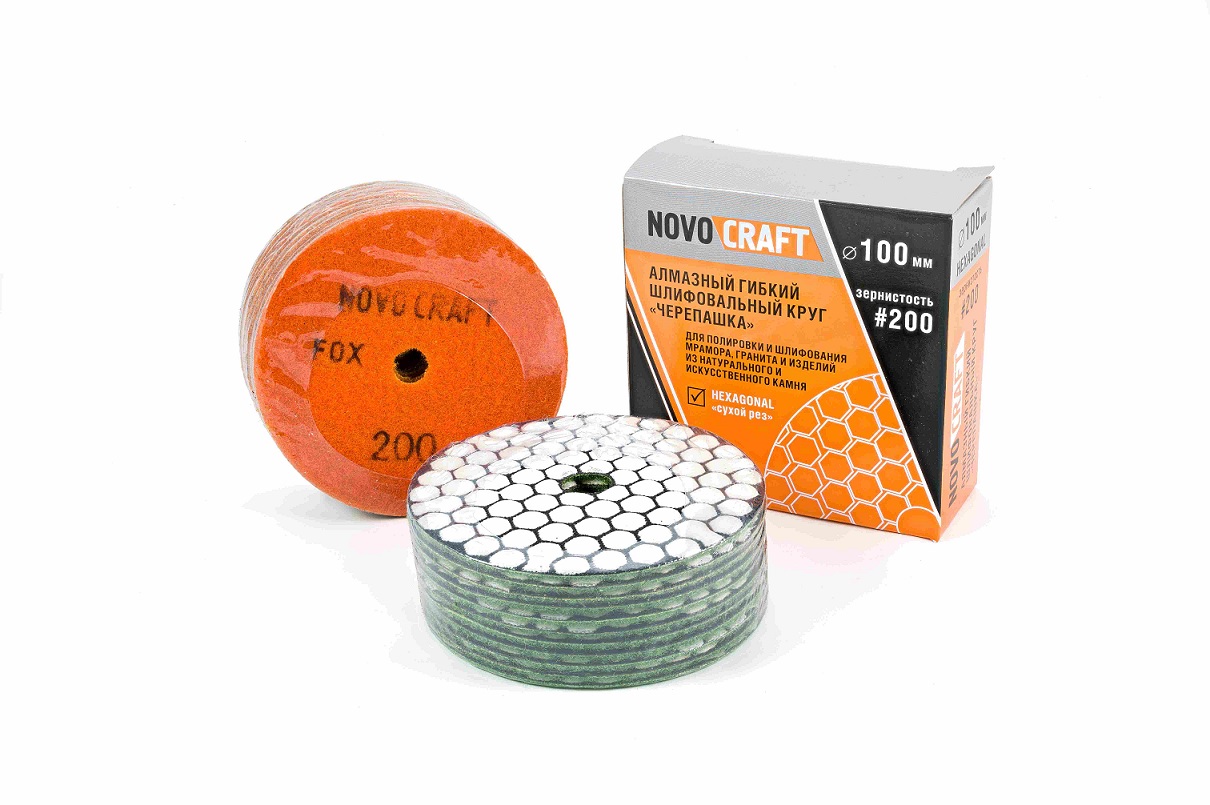 Круг шлифовальный на липучке 100мм Р200 алмазный сухой рез Черепашка (2шт) Fox Novocraft *1/10