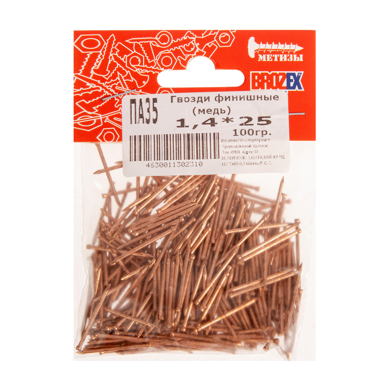 Гвозди финишные 1.4х25 мм BROZEX, 0.1 кг, медь