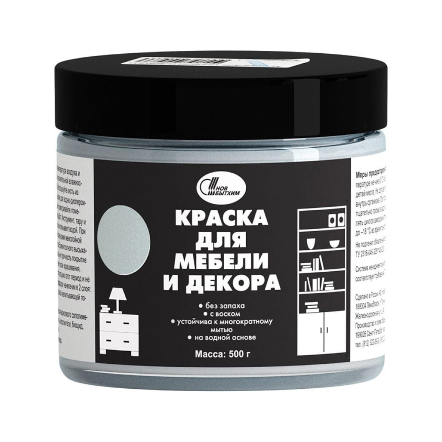 Краска акриловая для мебели и декора Мятный 0,5 кг Новбытхим *1/6