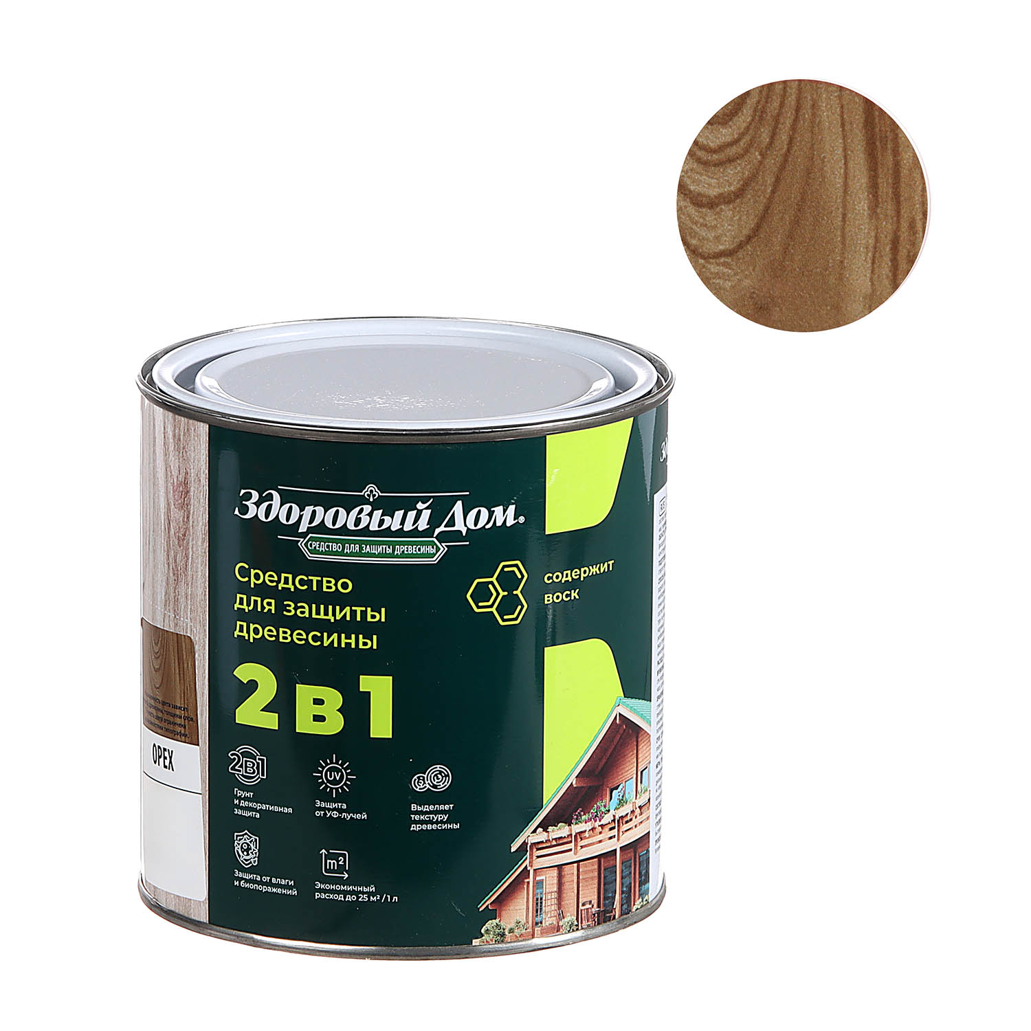 Деревозащитное средство Здоровый дом 2 в 1 орех 0.8 л представляет собой высокоэффективное покрытие для декоративной отделки древесины и защиты поверхностей на срок до 8 лет. Формула 2 в 1 позволяет наносить состав без предварительного использования грунта.