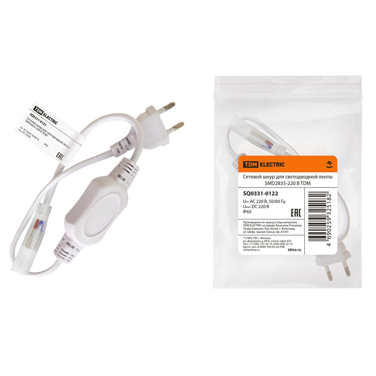 Сетевой шнур для светодиодной ленты SMD2835 220В SQ0331-0122 *1/100
