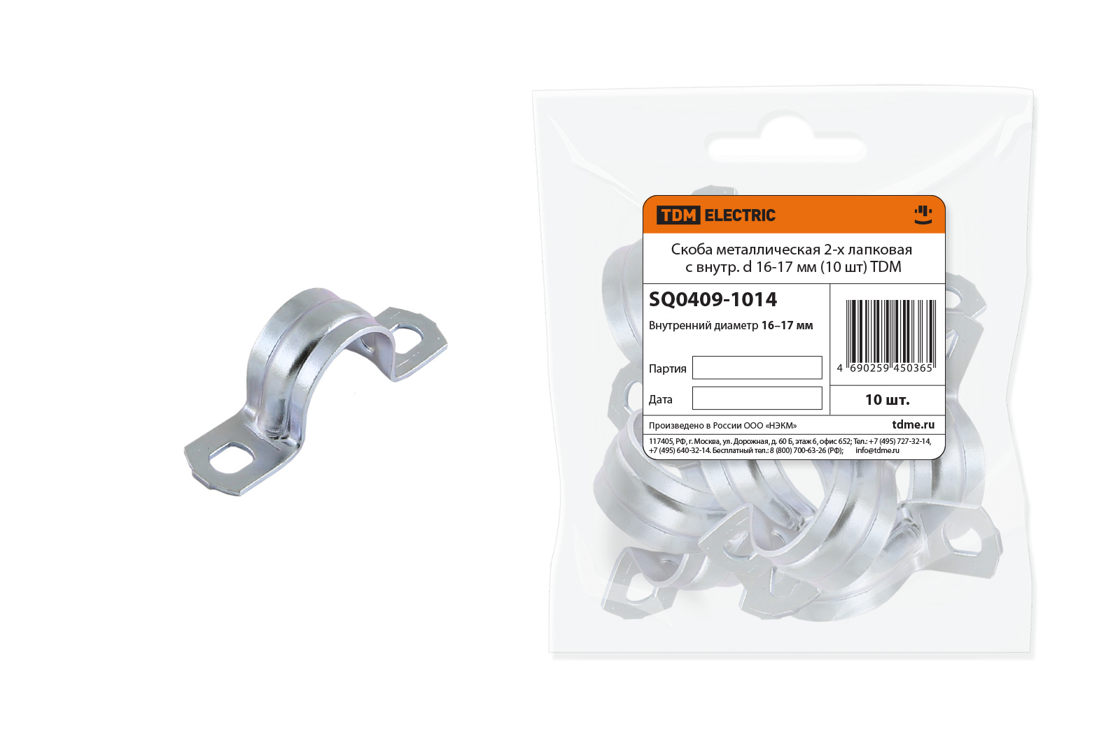 Скоба металлическая 2-х лапковая с d 16-17мм (10шт) TDM SQ0409-1014 *1