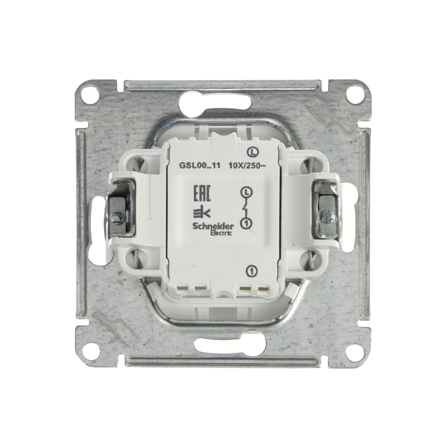 Механизм Schneider Electric Glossa (цвет белый) выключателя 1-клавишного подходит для сетей 250 В, на ток 10 А. - Выполнен из материала PС+ASA, стойкого к УФ-излучению и появлению царапин. - Эргономичные клеммы расположены в два ряда: сверху и снизу.