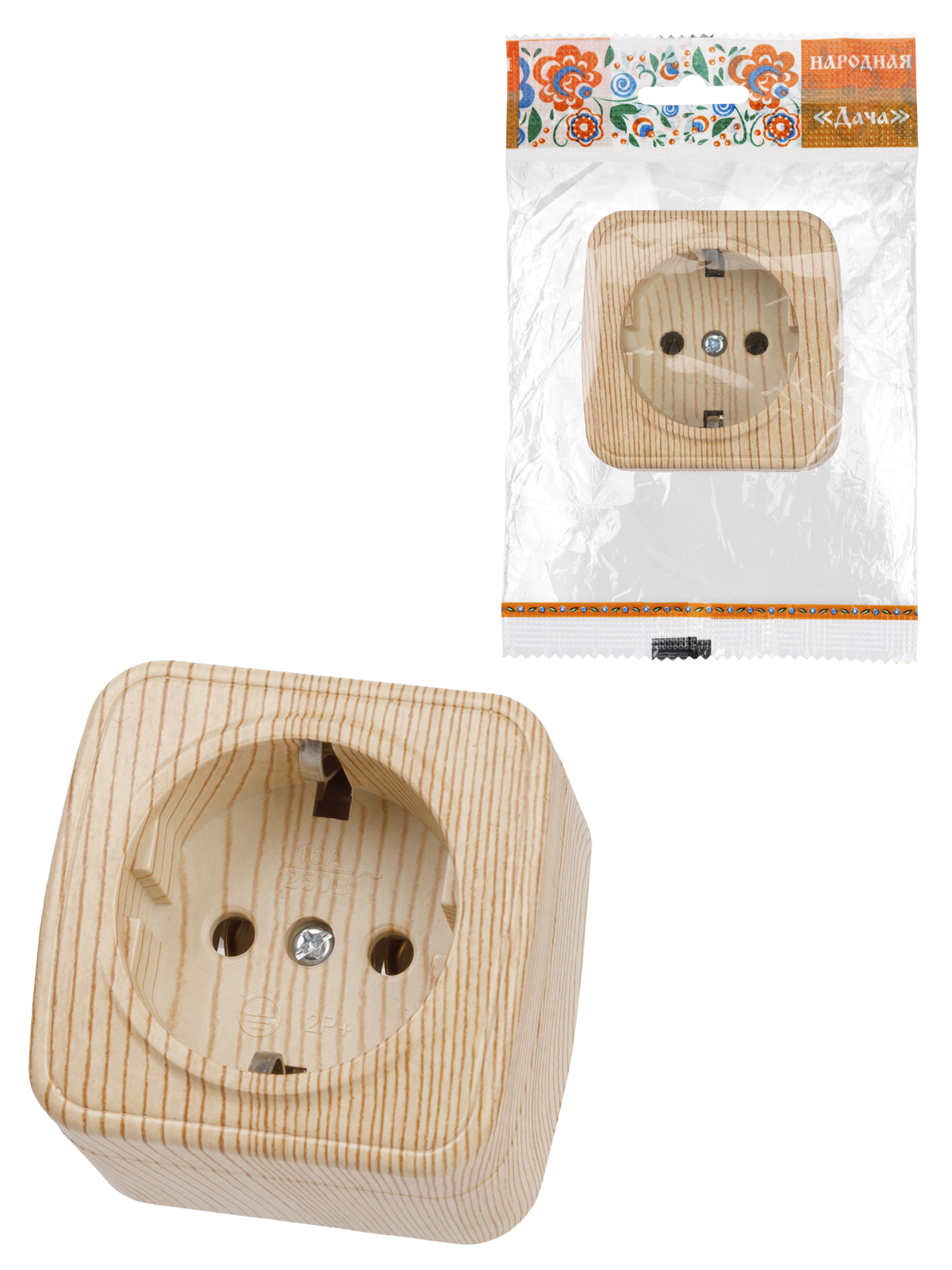 Розетка Дача ОП 1-мест. сосна сз А16 Народная SQ1824-0038