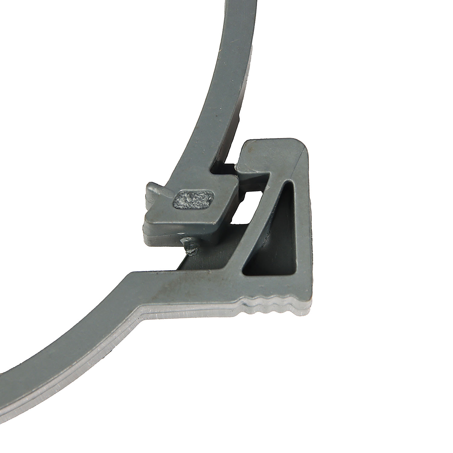Отличительная особенность изделия — крепежная система оснащена защелкой, что позволяет проводить установку без дополнительных инструментов. Хомут из полипропилена незаменим при ремонте трубопровода: работа проводится без отключения канализационной системы.