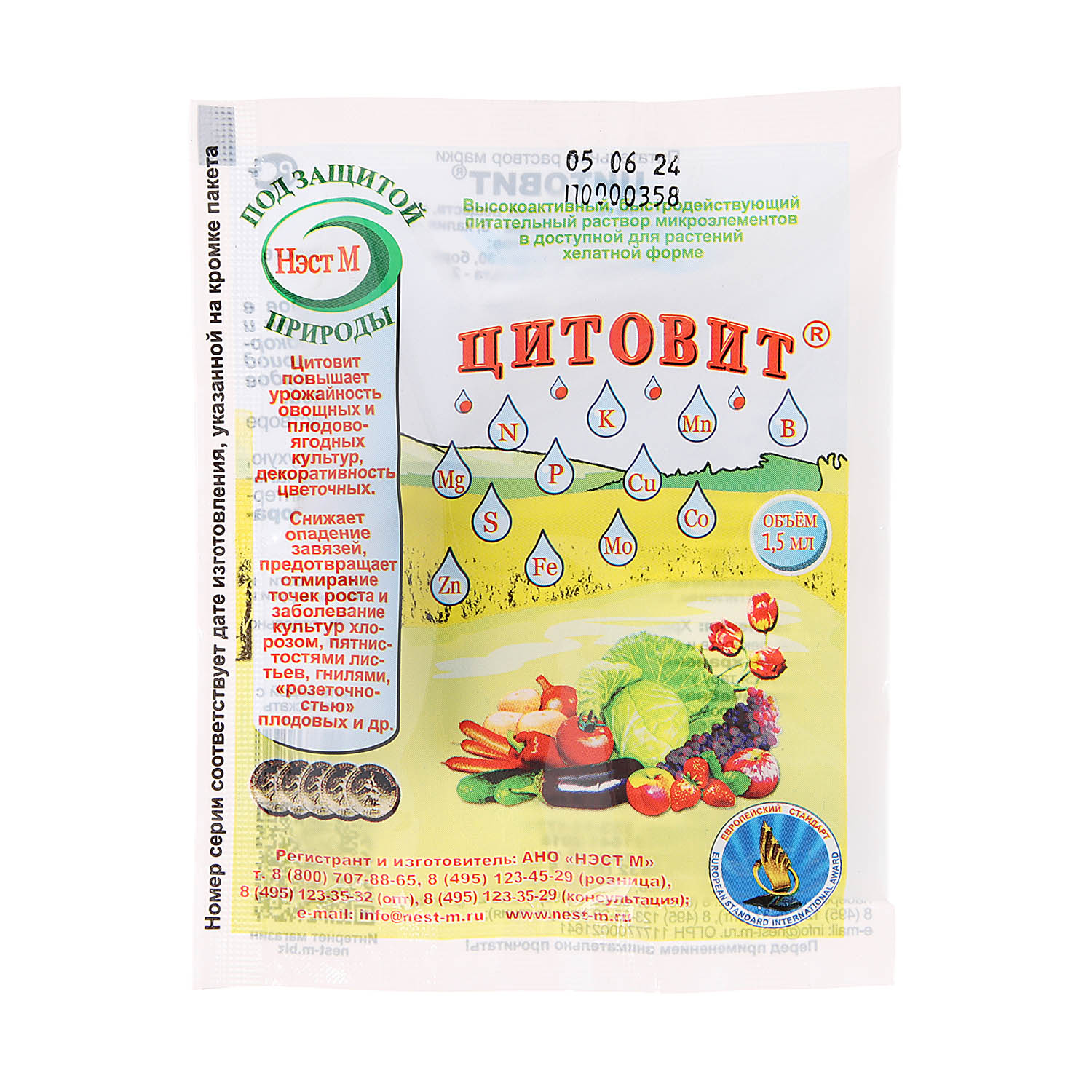 Питательный раствор Цитовит Нэст М для всех видов огородных, садовых, цветочных культур содержит полный комплекс макро- и микроэлементов в хелатной форме. Способствует более полному использованию внесенных макроудобрений. Усиливает обмен веществ и активизирует рост растений. Предотвращает отмирание точек роста, уменьшает опадение завязей. Предупреждает развитие различных видов пятнистостей листьев, плодовых и корневых гнилей. Повышает устойчивость растений к заболеваниям.