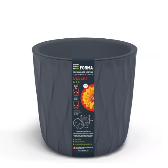 Кашпо пластм. "Desert"  6,1л d верха 217мм h211мм со вставкой Серый 86605 *1/10