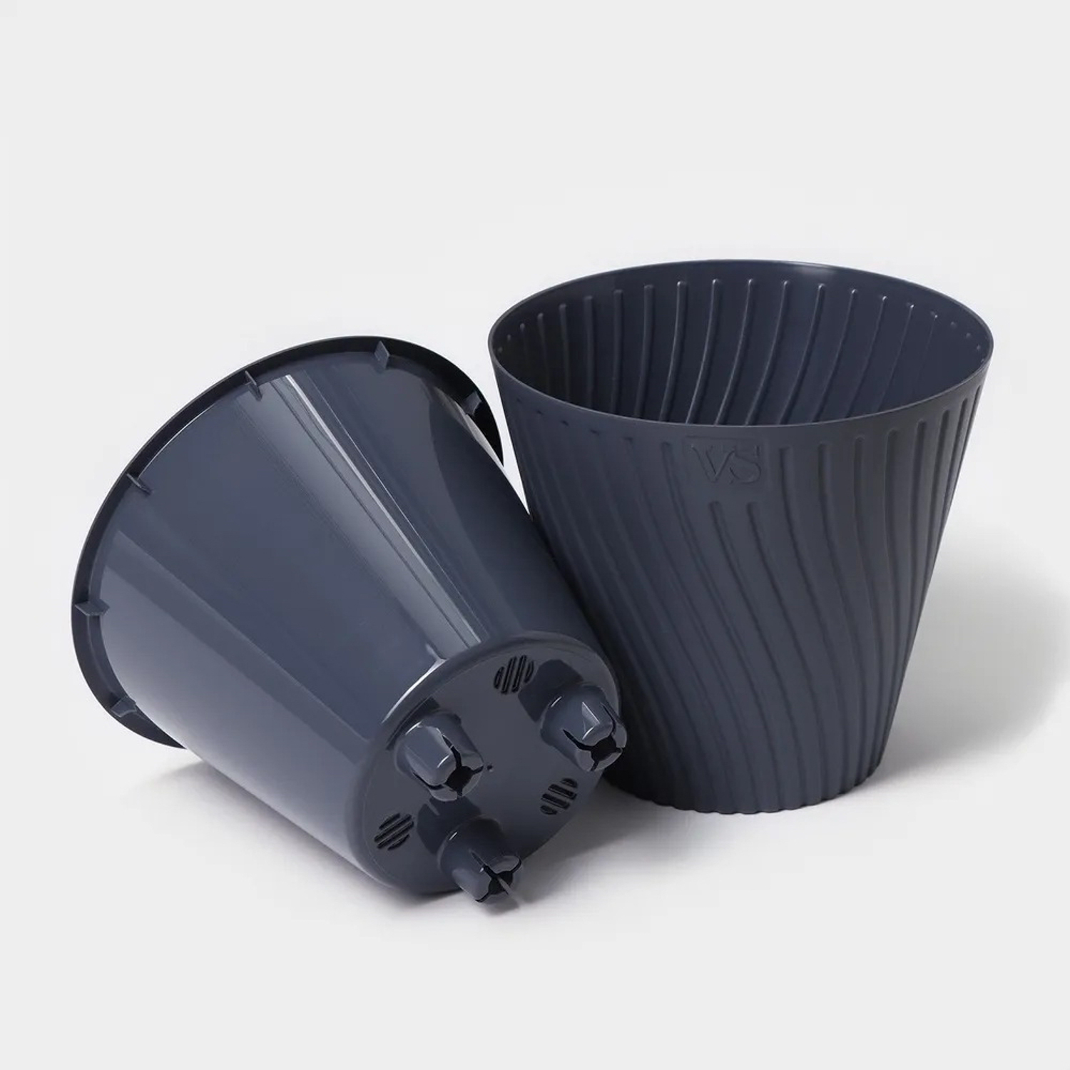 Кашпо пластм. "Луи" 1,2л d верха 140мм h129мм со вставкой Антрацит AML-1,2-12 ("VipSet") *1/30