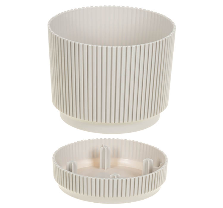 Кашпо пластм. "Стрип" 0,6л d верха 110мм h100мм с поддоном Кремовый М3245 ("М-Пластика") *1/18