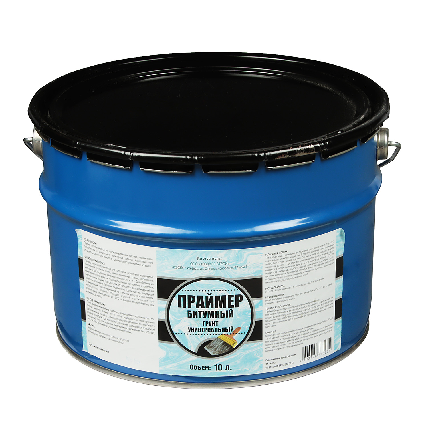 Праймер битумный ХозДвор изготавливаетсяиз высококачественных битумов, органических растворителей и специальных полимерных добавок, вследствие чего обладает высокой теплостойкостью, проникающей способностью и адгезией.
