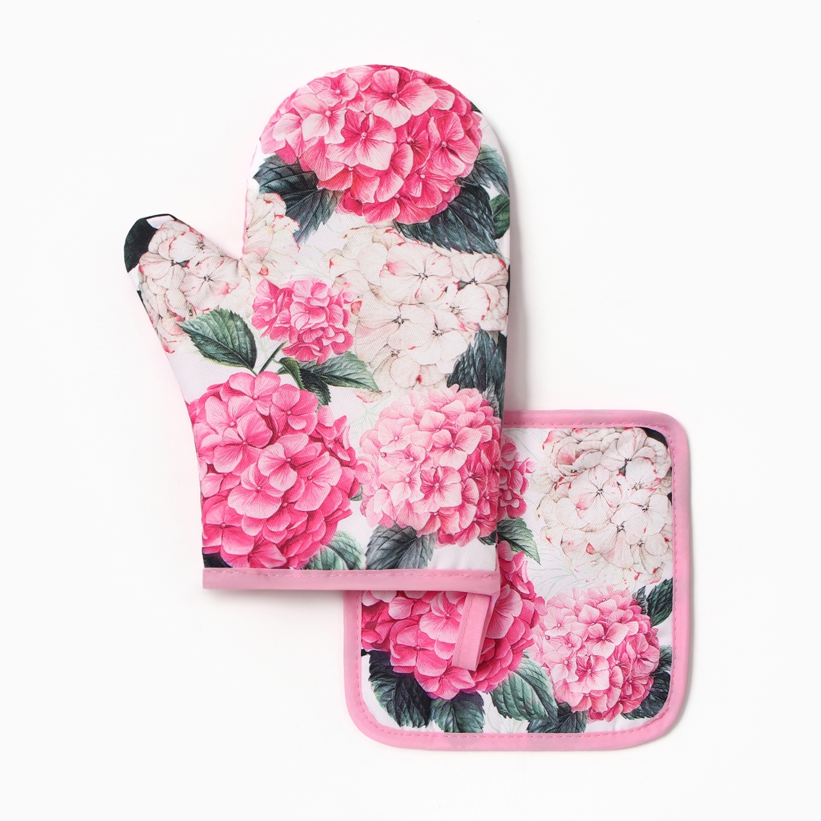 Набор прихваток Гортензия варежка-прихватка 27х20см, прихватка 17х17см 100% полиэстер Доляна *1