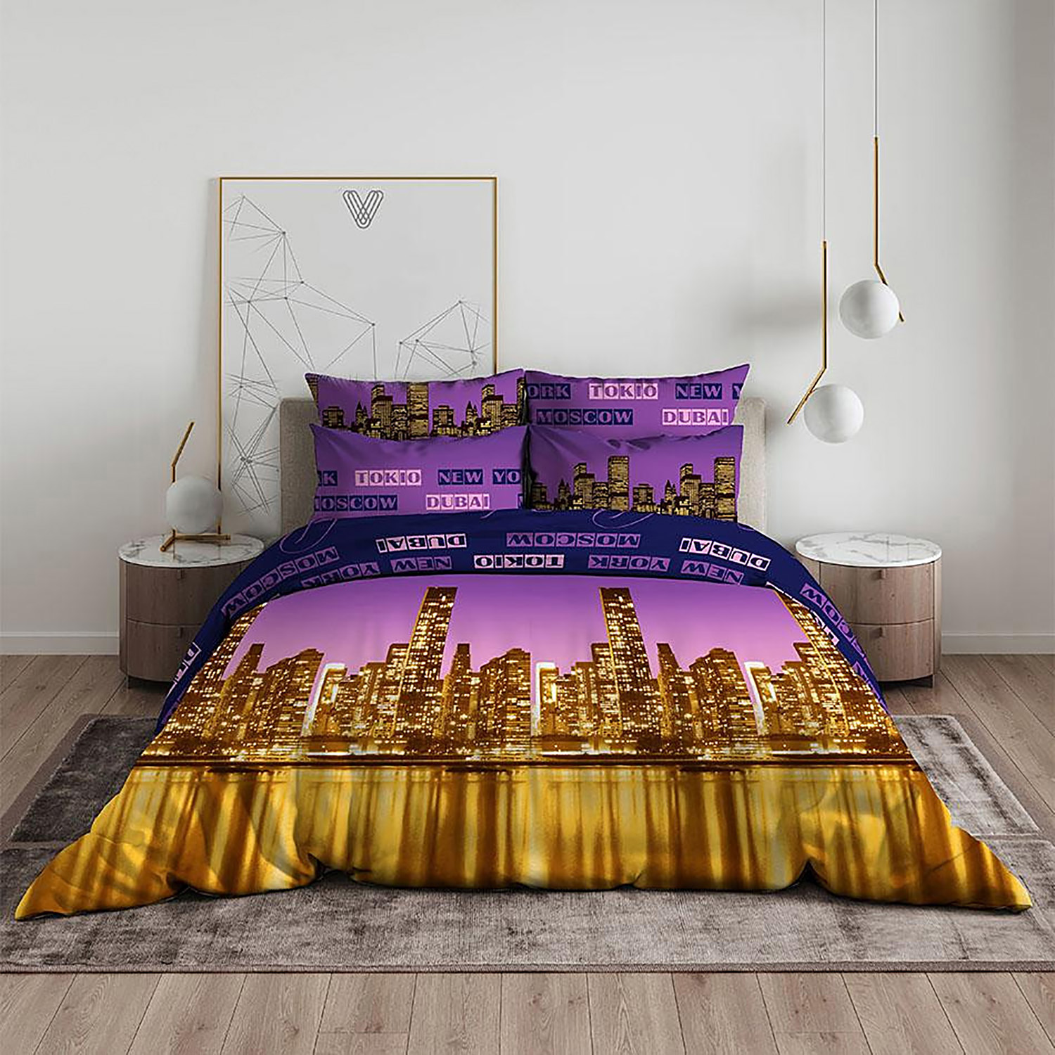 Постельное белье 2сп-М бязь Василиса 3698/1 Ночной город нав70*70,пр200*220 *1/5