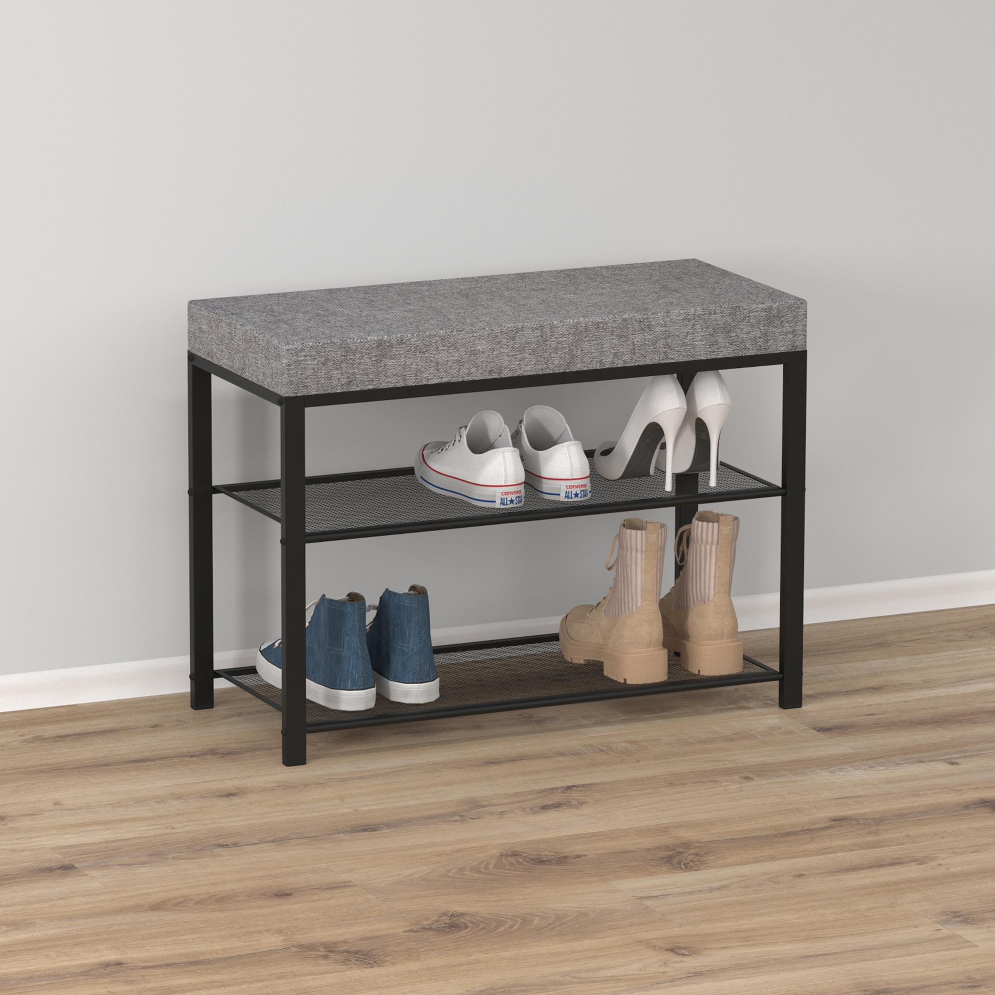 Подставка для обуви металл. "Торонто 23S" 3-х ярусная 670х300х490мм с Мягк.сид. Черн./Сер.БТ23С Ч *1