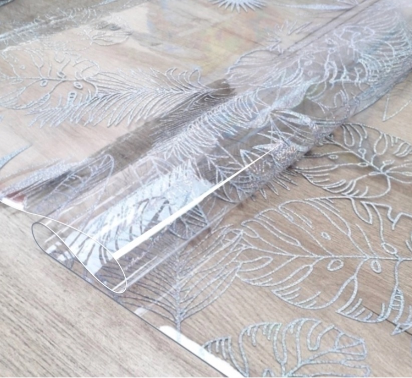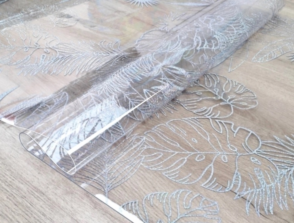 Клеёнка без основы "термо" гладкая "Листья белые" шир.0,6м,толщ.0,65мм GW-52252"ТермоКлеёнка"*20