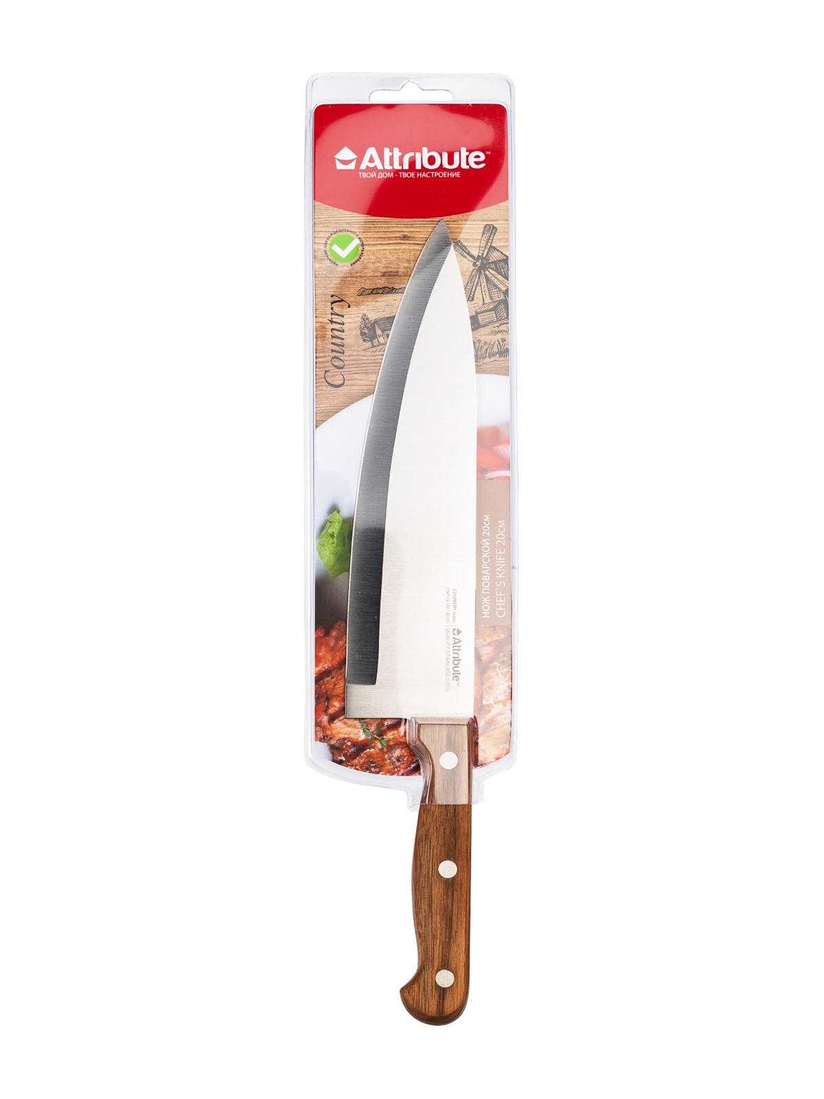 Нож кухонный ATTRIBUTE дер.руч. Country поварской дл.лезв.20см AKC228 блистер *1/6/36
