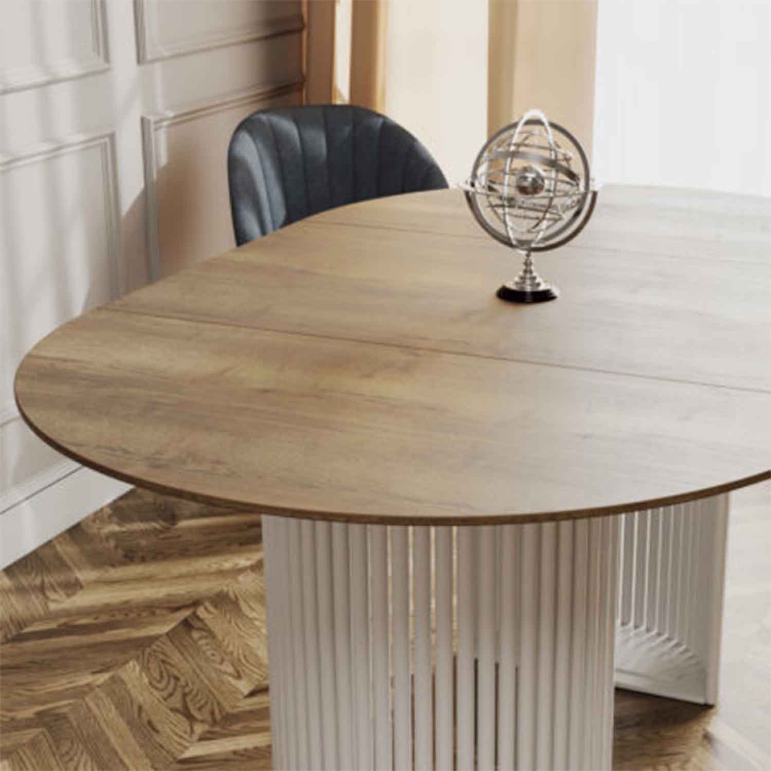 Стол обеденный круглый раздв.ВИЛАР d1050(+600)мм h750мм ДУБ ГАЛИФАКС натуральный+опоры белые *1