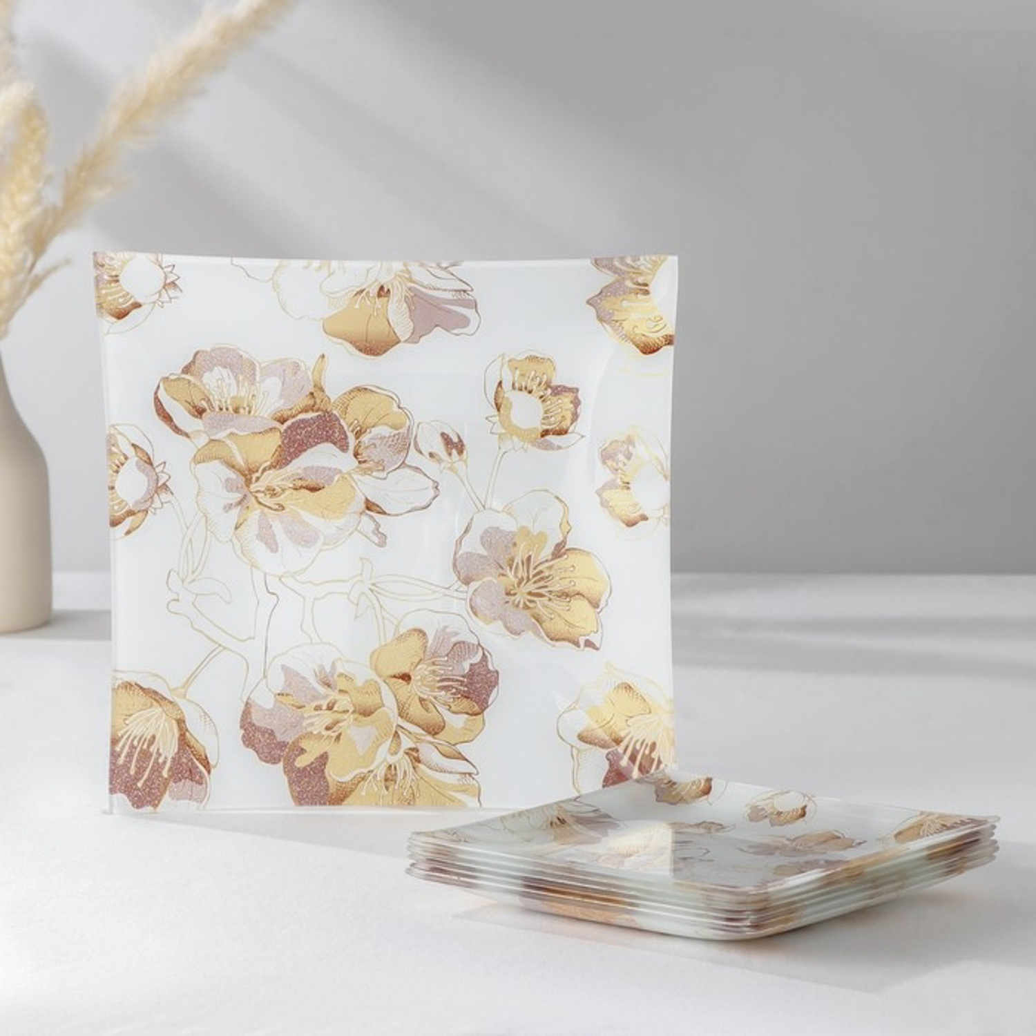 Набор столовый 7 предметов "Золотые цветы" (29,5 см - 1 шт, 19,5 см - 6 шт) 7334464