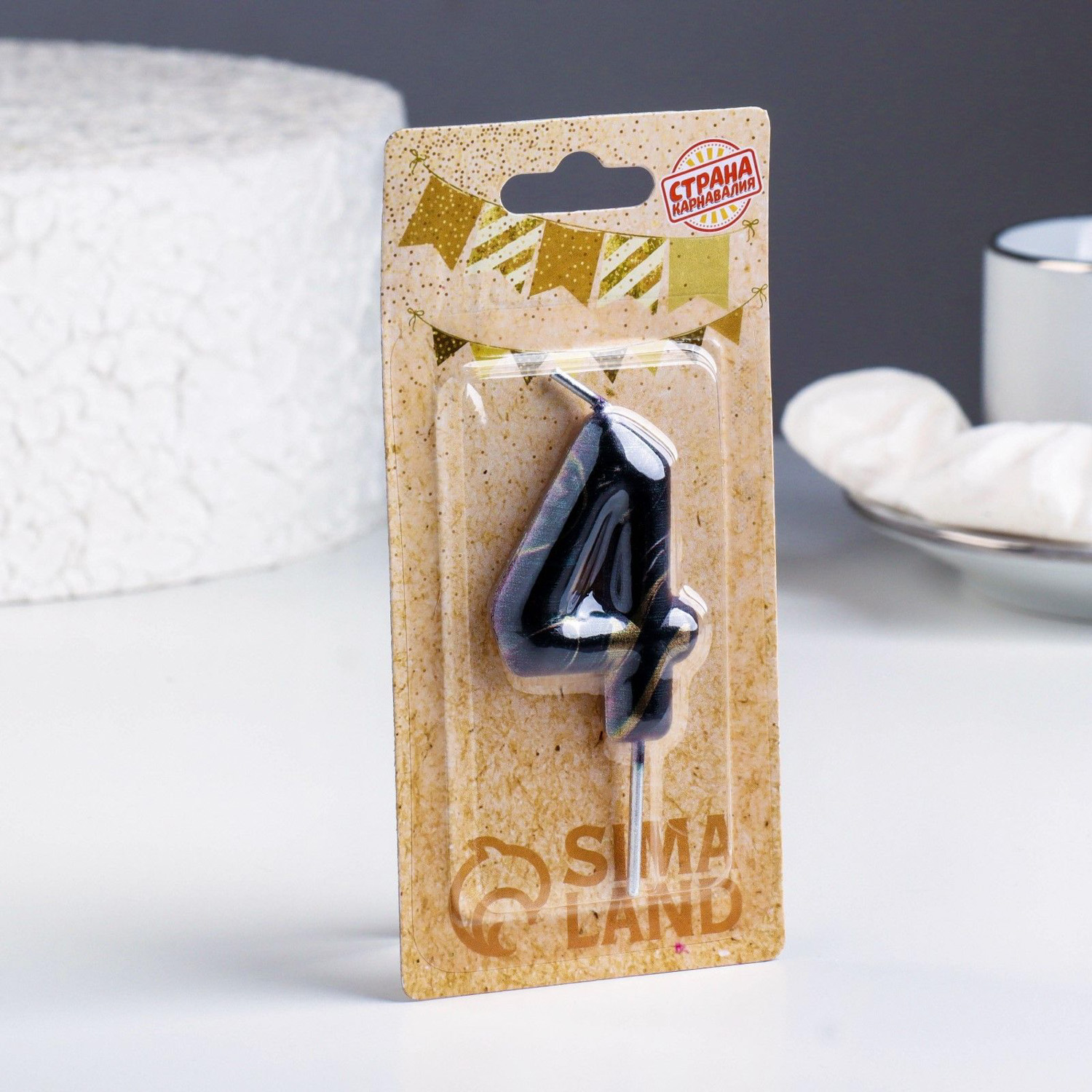 Свеча в торт "Черный мрамор", цифра "4", 8 см 6990858