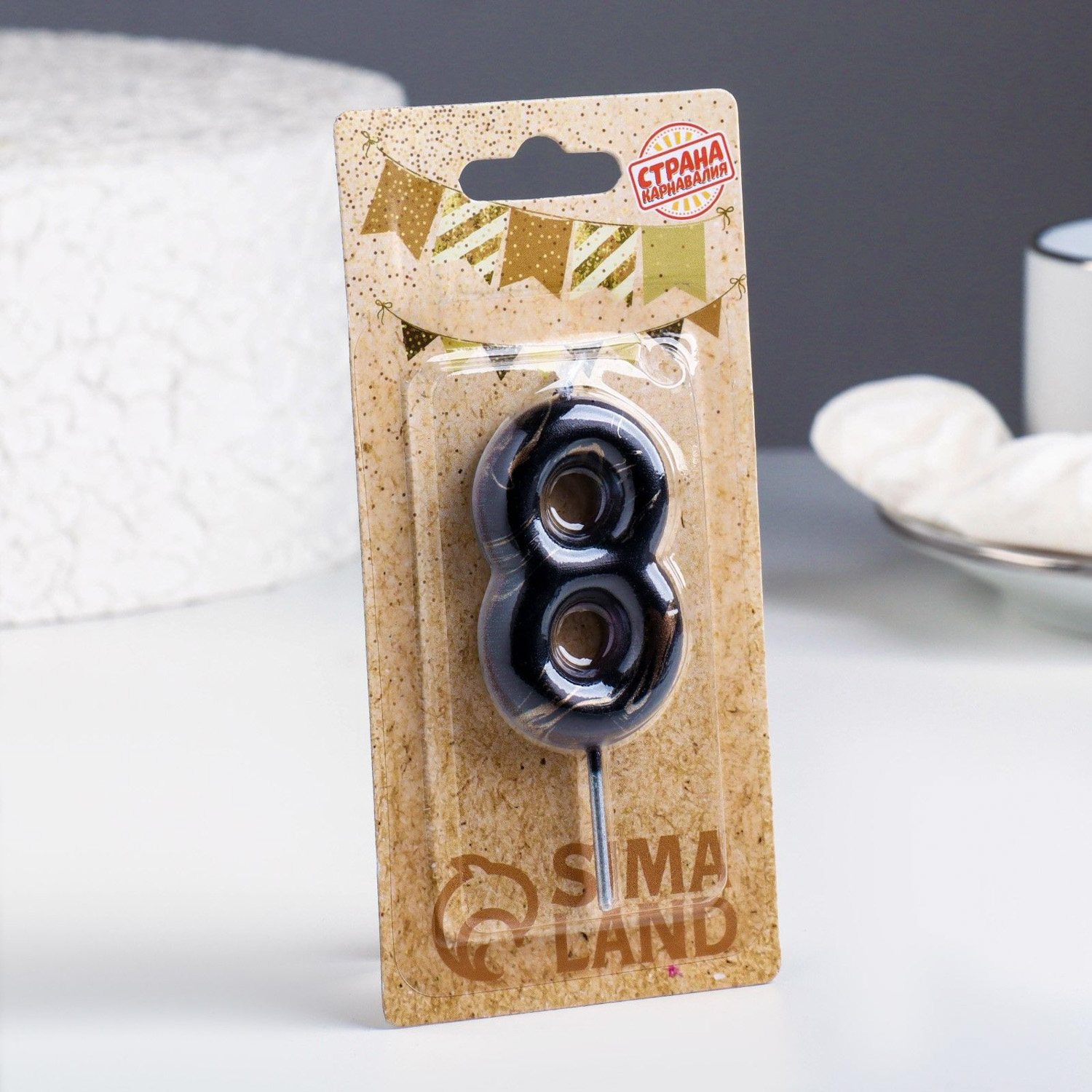 Свеча в торт "Черный мрамор", цифра "8", 8 см 6990862