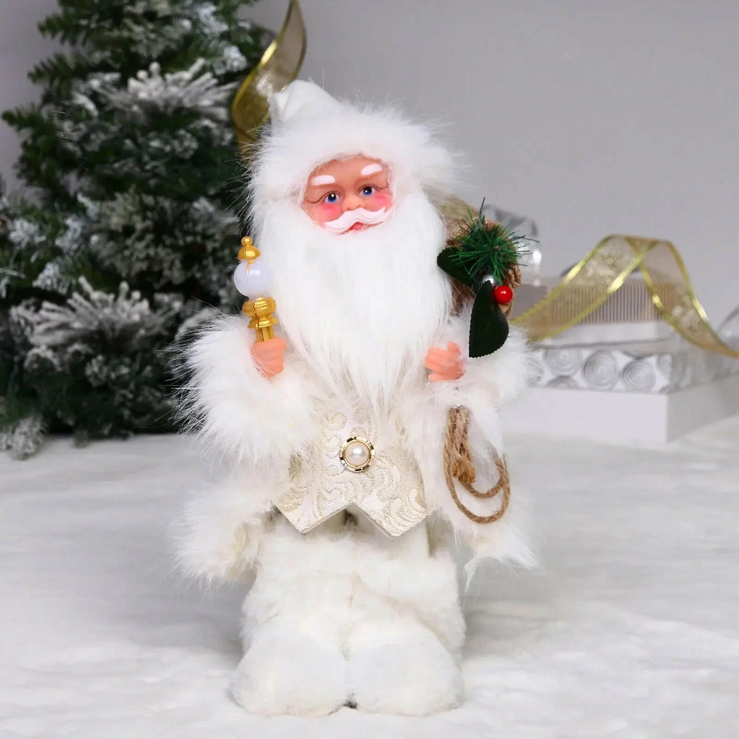 Дед Мороз - Лесовичок "Лесной волшебник" 30 см, Белый