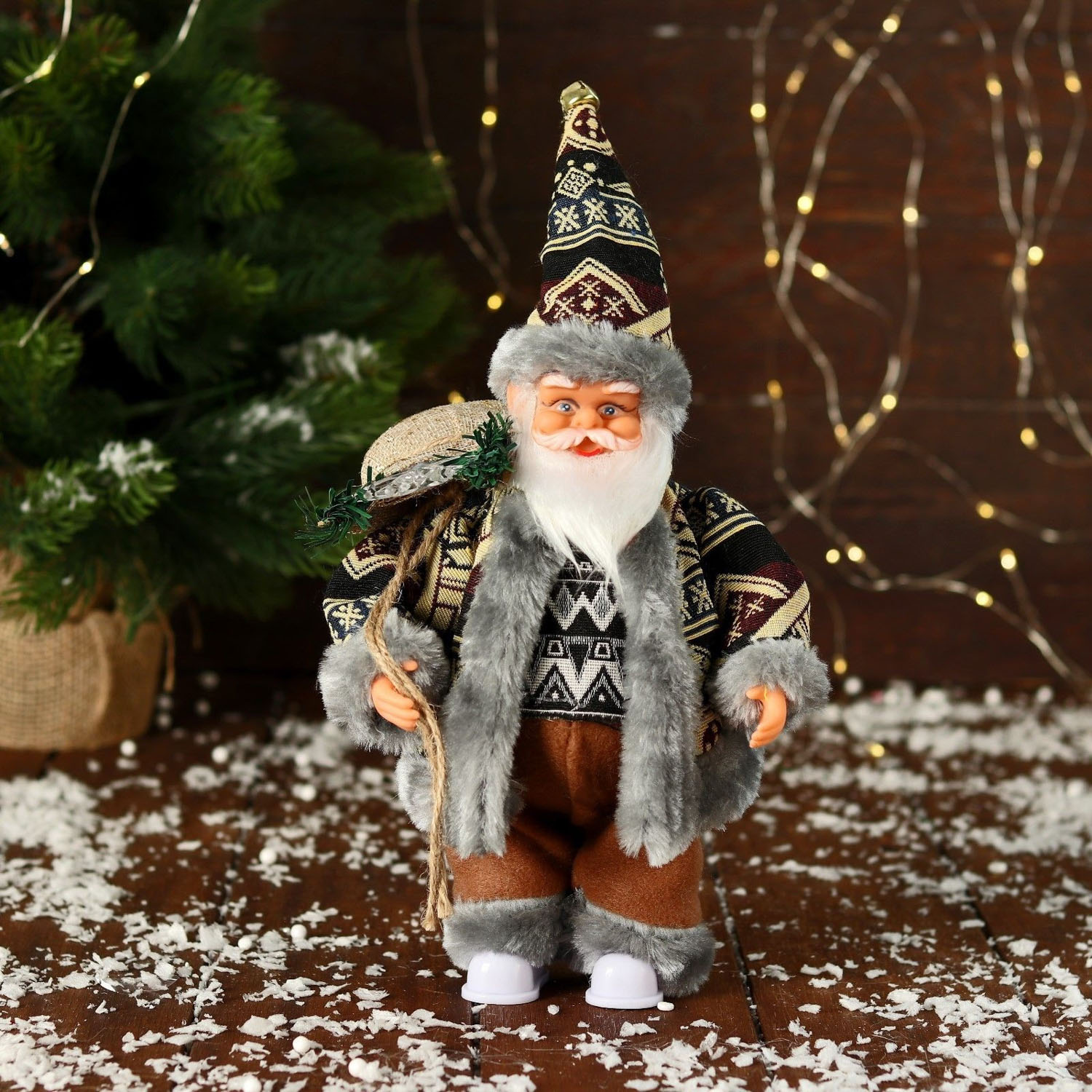 Дед Мороз "В тёплом костюме, с подарками" двигается, 24 см, серый 9692504