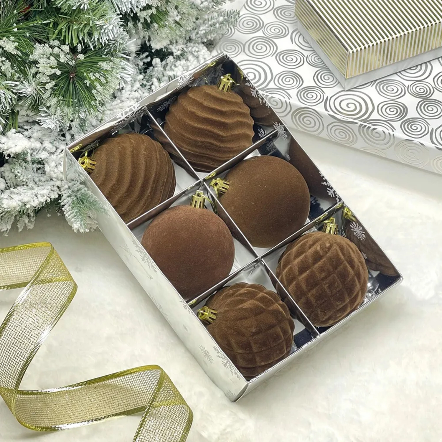 Набор шаров VELOUR "Стильная зима" 8 см (набор 6 шт), Шоколад