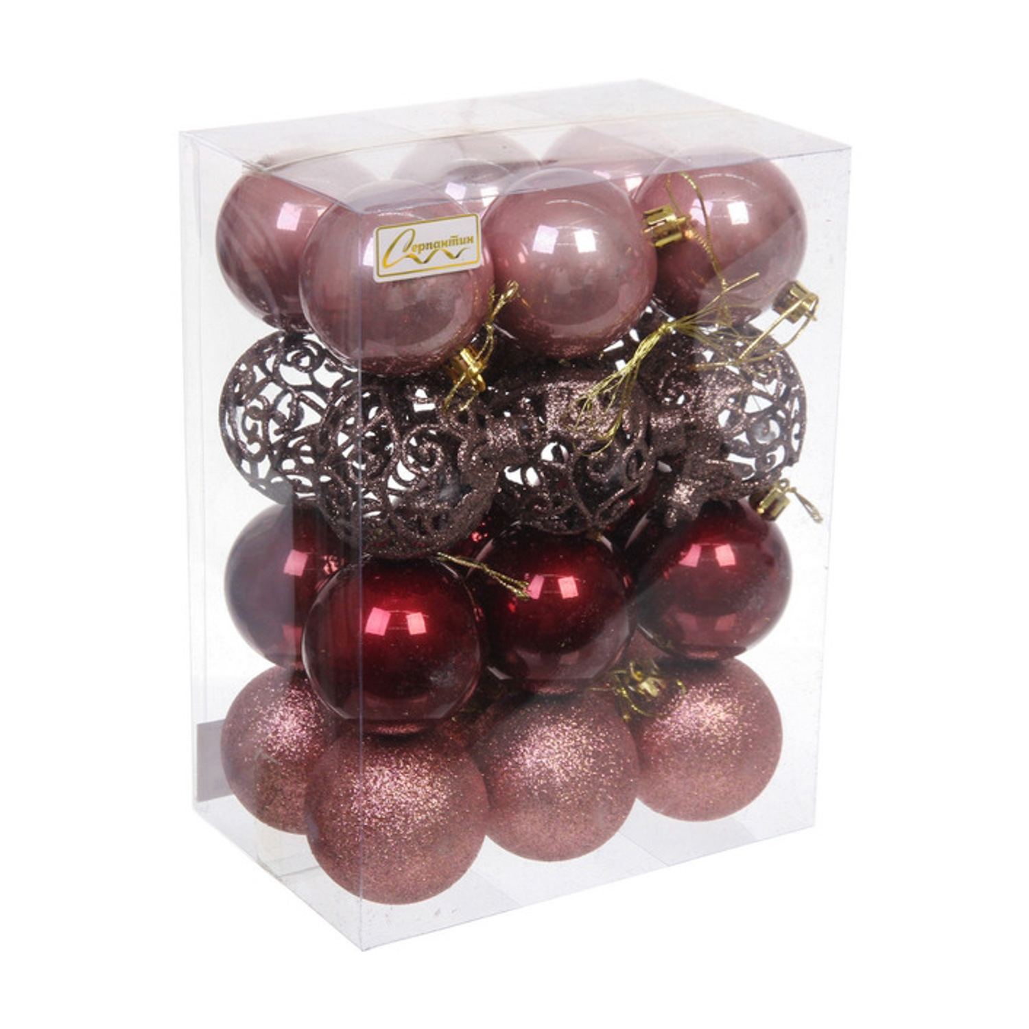 Набор ёлочных украшений "Brilliant story" 24 предмета (роз.золото/рубин)