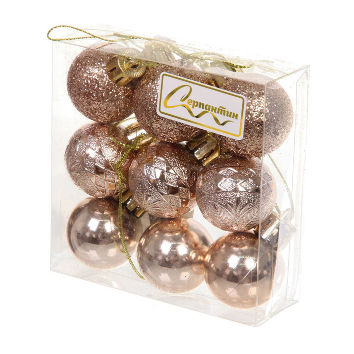 Новогодние шары 3 см (набор 9 шт) «Микс фактур», шампань