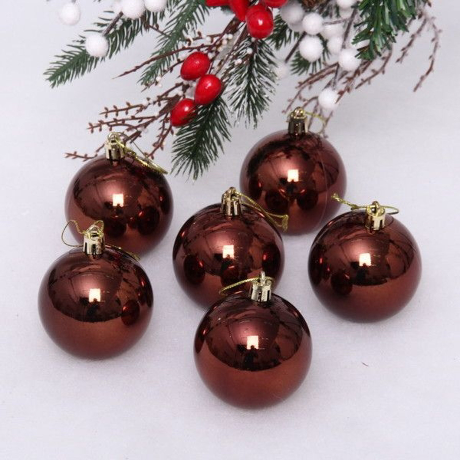 Набор новогодних шаров "Глянец", диаметр 5 см, 24 шт., шоколад
