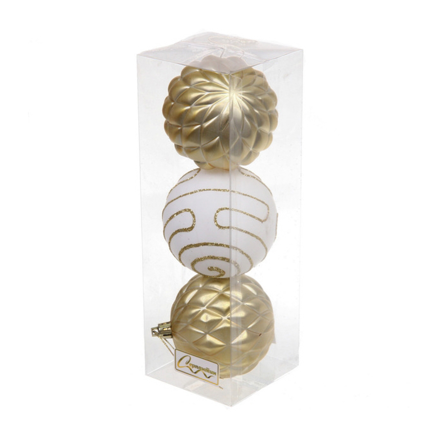 Новогодние шары 7см (набор 3шт) "Сказочная мечта", белый/золото