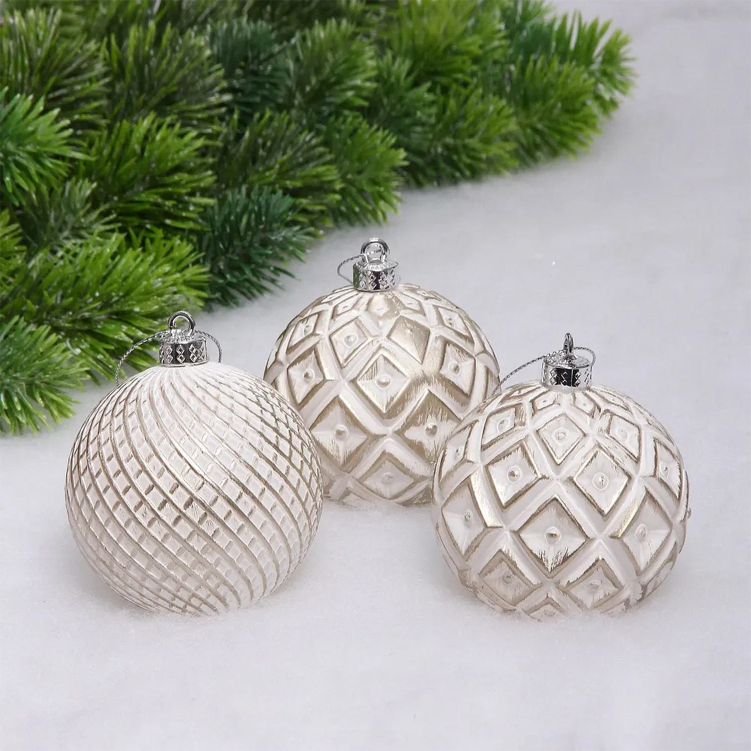 Новогодние шары VERSAILLES "Совершенство" 8 см (набор 3 шт), Белый/шампань
