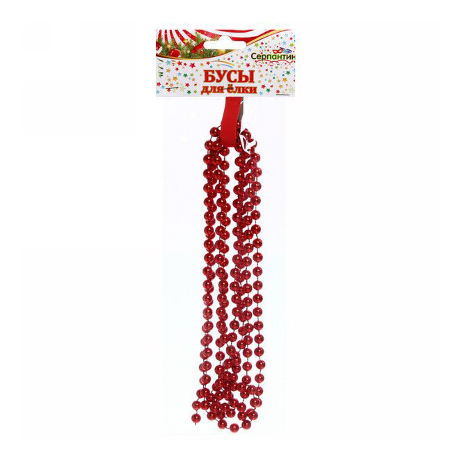 Бусы на ёлку красный 2,0 м "Шарик средний" d-8мм