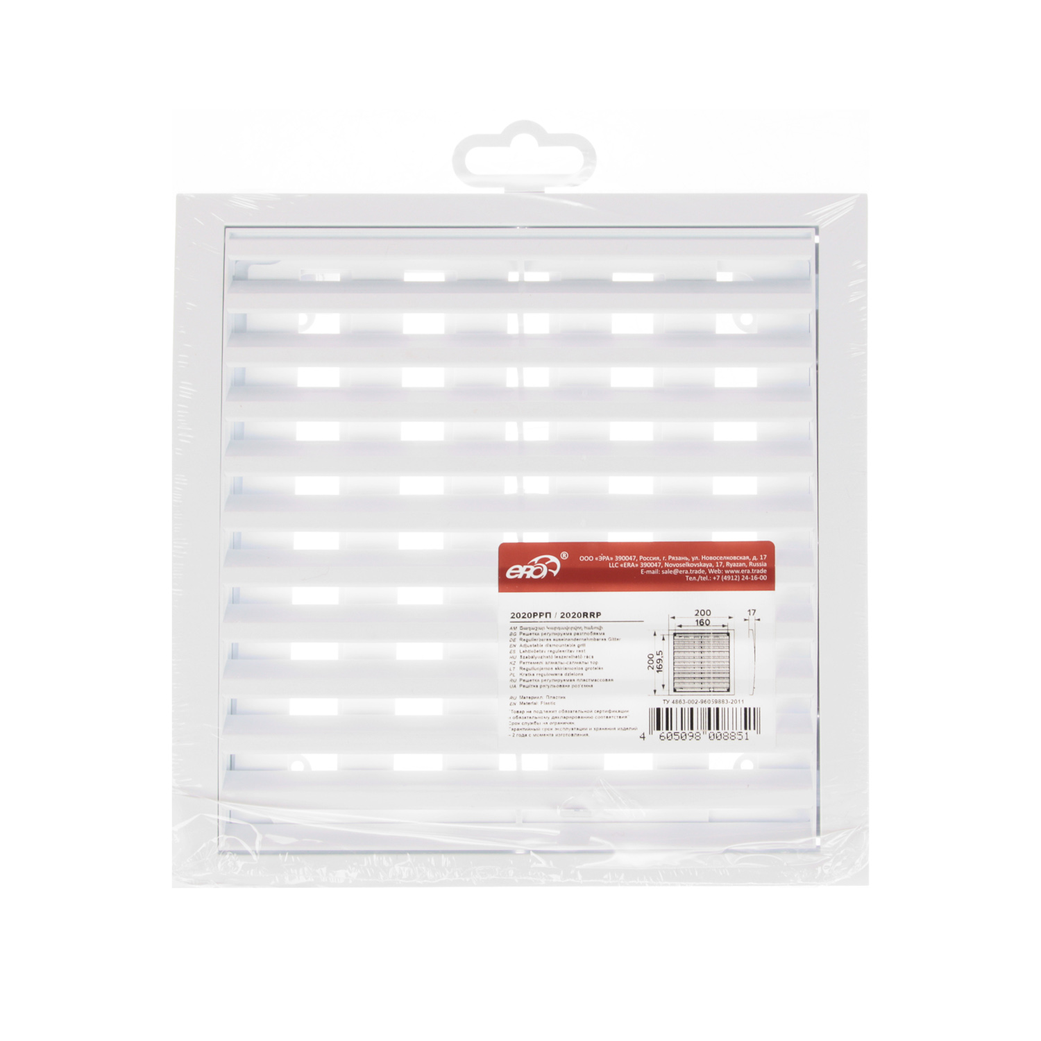 Решетка вентиляционная 200х200мм 2020РРП (регулируемые жалюзи) Эковент *1/40