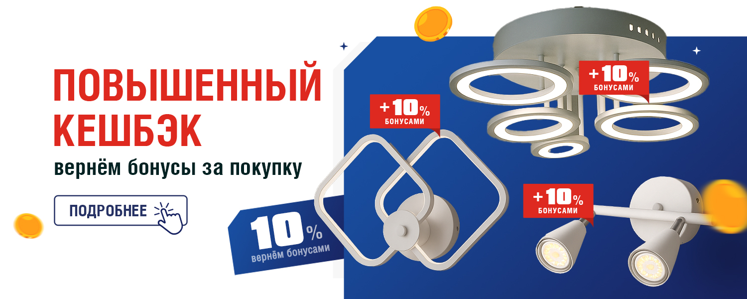 ▪ за покупку светильника, настольной лампы — вернём +10% бонусами.